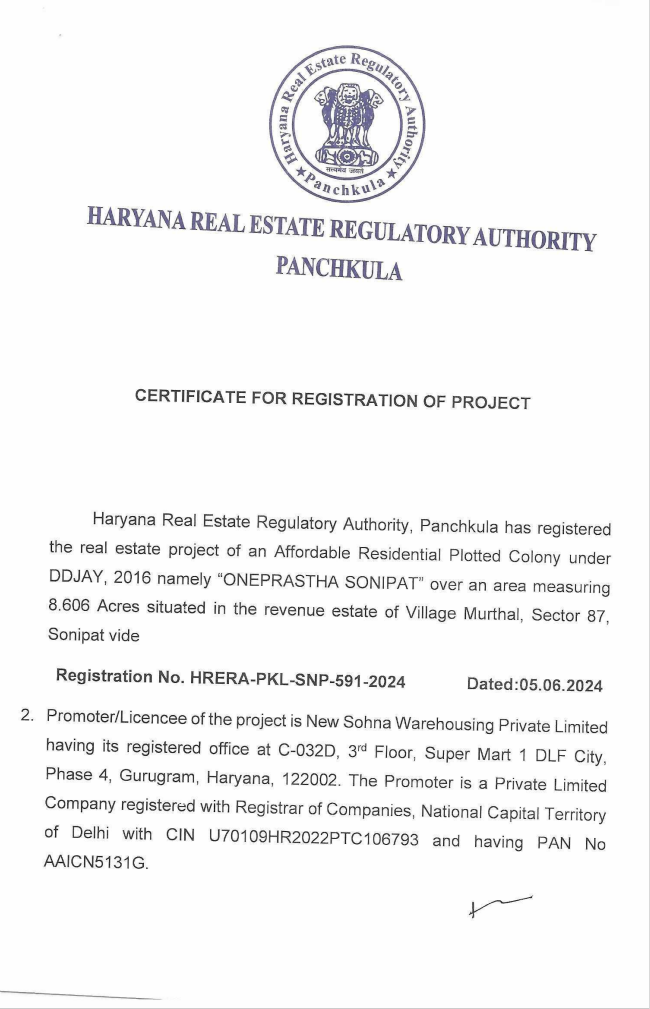 Site Office: Deen Dayal One Prastha Plots Murthal, Sonipat Haryana 131027