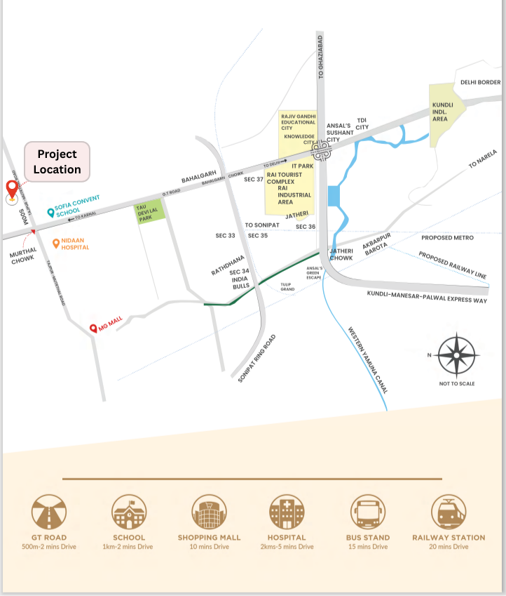 Nestled in the natural green surroundings of Sonipat, almost a stone throw away from Delhi, Oneprastha combines excellent connectivity, infrastructure, amenities and quality of life. Anything and everything that is needed like Hospitals, Education centres, recreational amenities is within 5-15 mins drive from the location of One Prastha. A gated community opportunity to experience a Holistic lifestyle without compromising on modern amenities and distance from Delhi & Gurgaon.